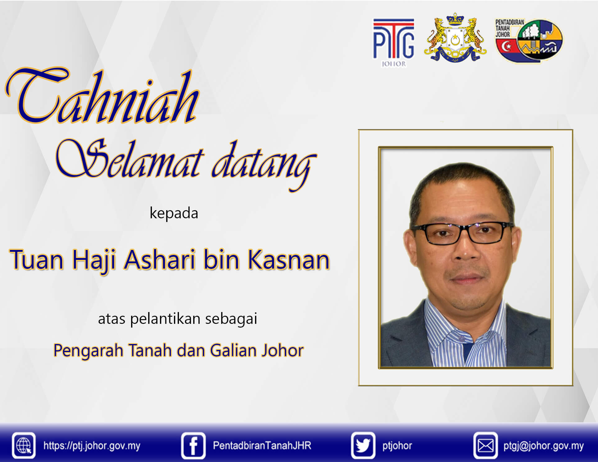Twitter এ Pejabat Tanah Dan Galian Johor Tahniah Dan Selamat Datang Diucapkan Kepada Tuan Haji Ashari Bin Kasnan Pengarah Tanah Dan Galian Johor Yang Baharu Selamat Datang Juga Diucapkan Kepada Pegawai Pegawai Yang Turut